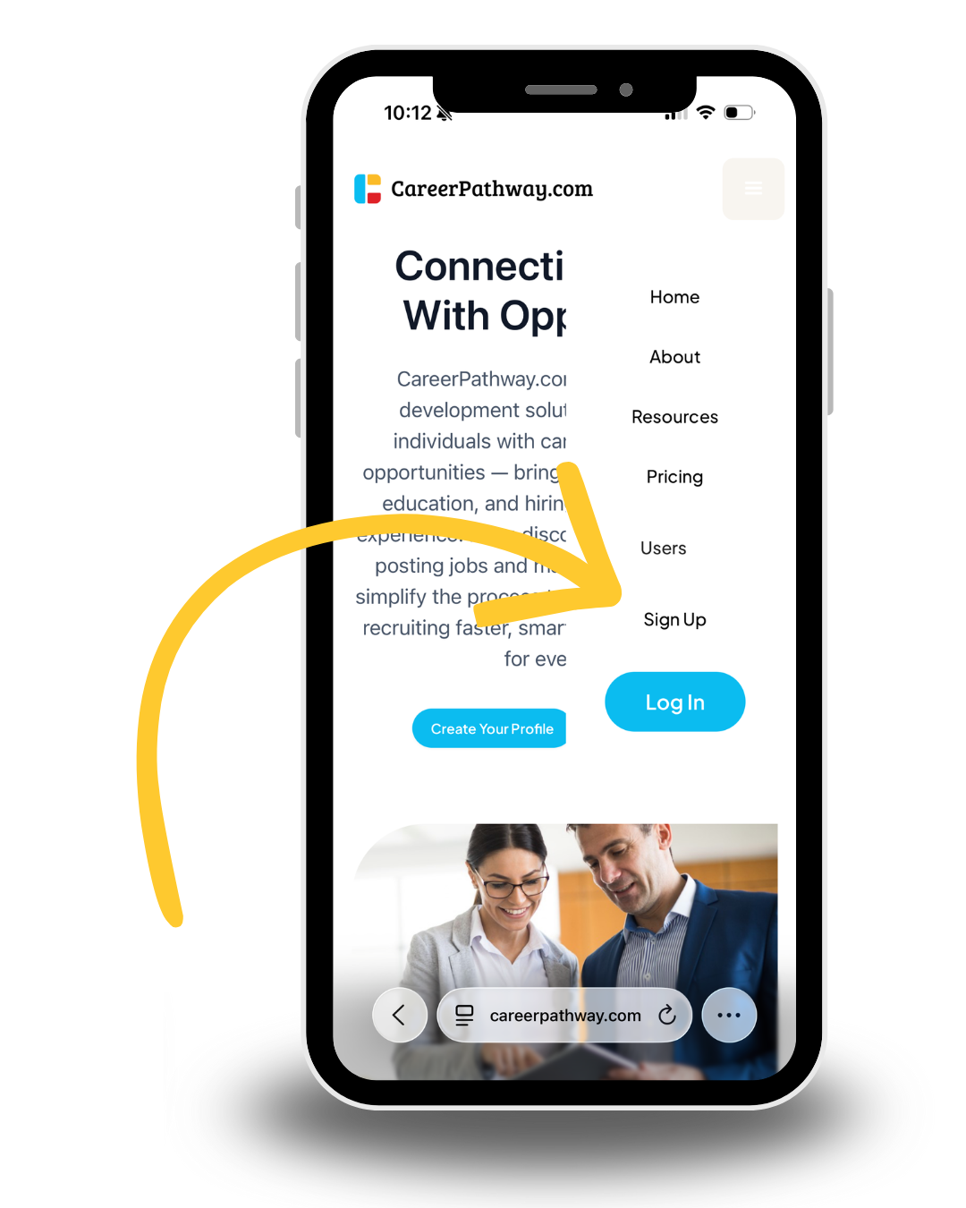 • Sign up with an email and password. Use an email address where you can receive an email from CareerPathway.com like a personal account (school provided email addresses may prohibit this)